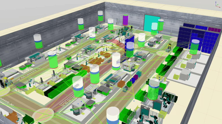 In principle, the term “digital factory planning” speaks for itself. The term “digital twin” is also frequently used. In short, this is a fully digitalised image of an existing (brownfield) or future (greenfield) production facility. With appropriate software solutions, the digital twin of a factory can be planned and tested virtually before “real” production begins.